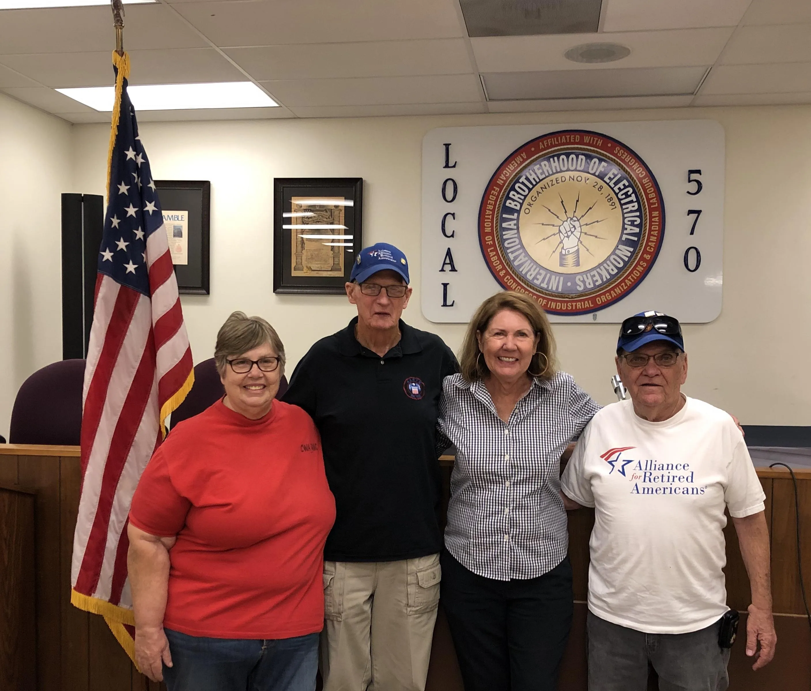On Tuesday, July 30th, CWA Local 70003 President Saundra Cole attended Congresswoman Ann Kirkpatrick's Labor Round Table at IBEW Local 570 in Tucson, AZ. Also in attendance were Arizona Alliance for Retired Americans members Vic Peterson and Dan Pollard. Congresswoman Kirkpatrick listed the bills she has co-sponsored, such as the Raise the Wage Act and Medicare for All, and her reasoning behind it. There were many other union leaders in attendance which made for a lively discussion.