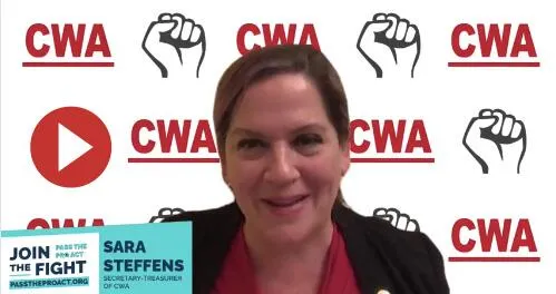 Last week, CWA Secretary-Treasurer Sara Steffens was featured on a Protecting the Right to Organize (PRO) Act national virtual townhall co-hosted by CWA, the AFL-CIO, and the International Union of Painters and Allied Trades (IUPAT).